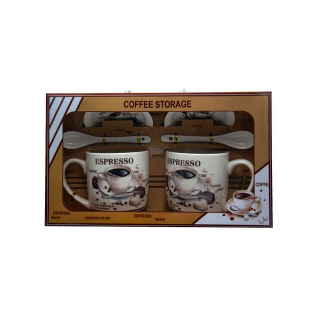 Set 2 cani cu farfurii si lingurite Aromaland, model coffe, 300 ml Set 2 cani cu farfurii si lingurite Aromaland, model coffe, 300 ml