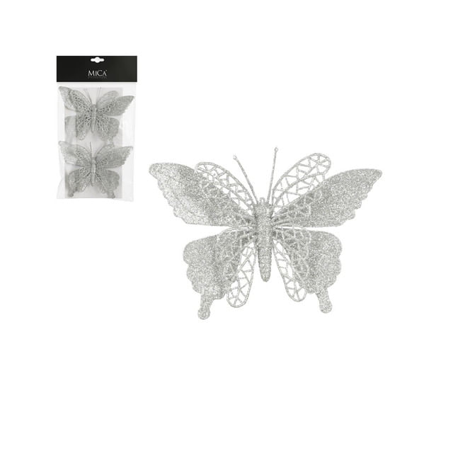 Set 2 ornamente de brad fluturi cu clips argintii, 16 x 11 cm - Comanda online acum