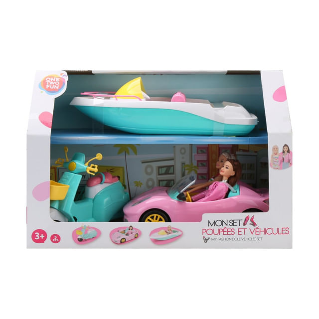 Set 2 papusi cu 3 vehicule One Two Fun - Comanda online acum