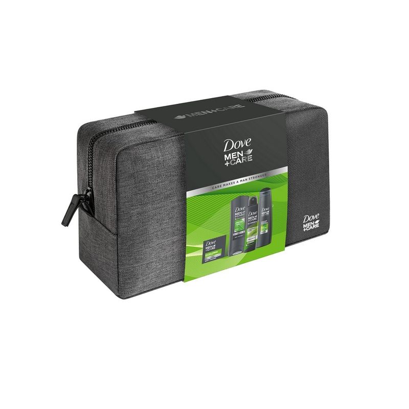 Setul Dove Men+Care Minerals Sage + geanta pentru cosmetice cadou contine: gel de dus, 250ml + antiperspirant spray, 150ml + sampon, 250ml + geanta pentru cosmetice (cadou)Gelul de dus Dove Men+Care Minerals + Sage a fost special creat pentru pielea barbatilor, folosind tehnologia Micro Moisture. Este dovedit clinic ca protejeaza impotriva deshidratarii pielii mai bine decat gelurile de dus obisnuite pentru barbati. Gelul de dus Dove Men+Care Minerals Sage, inspirat de elementele naturii, ofera o curatare eficienta si o senzatie energizanta de prospetime.Antiperspirantul spray Dove Men+Care Minerals Sage ii ofera pielii confort si protectie completa a€“ pentru o prospetime energizanta care dureaza. Dovedit clinic ca ofera 48 de ore de protectie, acest spray antiperspirant pentru barbati se usuca imediat, asigurand protectie impotriva transpiratiei, protejand in acelasi timp pielea datorita tehnologiei cu A¼ agenti de hidratare.Dove Men+Care Extra Fresh nu usuca pielea asa cum o fac sapunurile obisnuite si ofera o senzatie de confort pielii, fiind recomandat atat pentru corp, cat si pentru fata. Parfumul revigorant ofera o senzatie de prospetime .Contine A¼ crema hidratanta .samponul Dove Men+Care Fresh Clean, conceput special pentru barbati, contribuie la fortifierea parului datorita formulei cu cafeina. samponul Dove Men+Care Fresh Clean curata parul in profunzime, iar mentolul ofera o senzatie de prospetime cu efect revigorant.