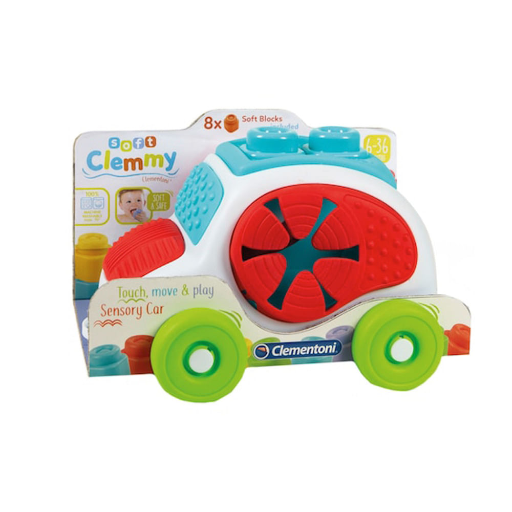 Masinuta senzoriala de la Clementoni este o masinuta de jucarie cu insertii moi, precum cuburile Clemmy, pentru a stimula jocul si experienta dezvoltarii senzoriale. Insertiile moi sunt destinate explorarii si atingerii, pentru a descoperi diferitele forme si texturi. Stimuleaza atingerea si dexteritatea. Acoperisul masinii se poate deschide, iar inauntru este spatiul de depozitare pentru cuburi. Geamurile laterale moi iti permit sa introduci si sa scoti cuburi din masinuta prin aceastea. Atat cuburile cat si masinuta se pot spala chiar si la masina de spalat.