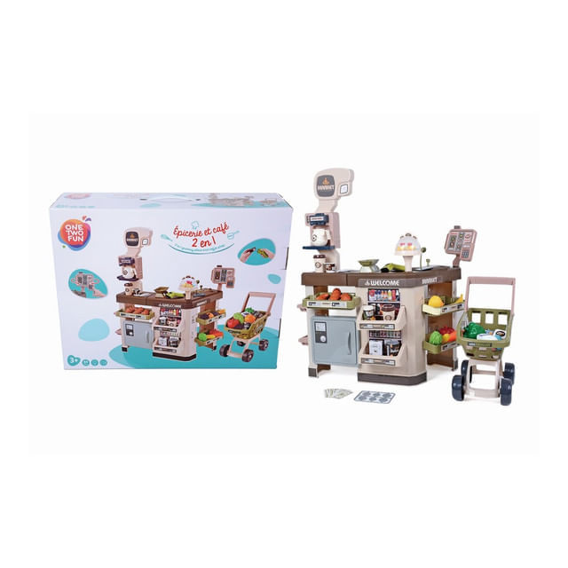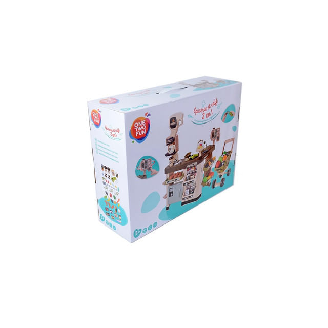 Set de joacă One Two Fun 2 în 1 Magazin alimentar și cafenea 64 de piese