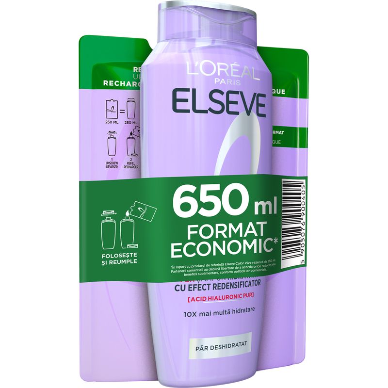 Set hidratant L'Oreal Paris Elseve Hyaluron Plump pentru par deshidratat: sampon, 400 ml + rezerva, 250 ml - Comanda online acum