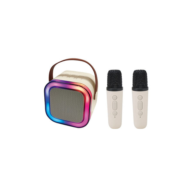 One Two Fun - include 1 boxă, 2 microfoane, 1 încărcător USB; Vârsta recomandată: 3+; Funcții: KARAOKE, 3 moduri de redare (bluetooth / card TF / U disk), reglaj volum, cu lumină, schimbare voce; Dimensiune produs: 8.7 x 6.7 x 12.2 cm; Baterie necesară: 3.7V 800MAH LI-POLY, Încărcător USB (INCLUS). Modelul se livreaza aleatoriu in functie de stoc-ul disponibil.