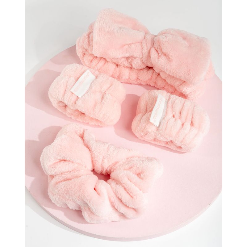 Ridica rutina ta zilnica de infrumusetare la un nou nivel cu acest set luxos. Realizata din materiale premium, bentita pentru machiaj ofera o solutie eleganta si usoara pentru a-ti tine parul departe in timpul ritualurilor de ingrijire a pielii sau al aplicarii machiajului. Este insotita de un elastic din microfibra, delicat cu parul, si de doua benzi pentru incheieturi care ofera confort in timpul rutinei de skincare, mentinandu-ti incheieturile uscate si fara urme de produs.