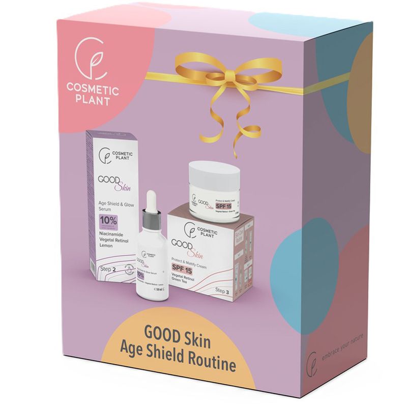 Age Shield & Glow Serum 30 ml: Aqua, Niacinamide*, Propylene Glycol, Glycerin*, Bakuchiol*, Ribose*, Citrus Limon Fruit Extract*, Butylene Glycol, Citric Acid, Xanthan Gum, Polysorbate 20, Sodium Gluconate, Phenoxyethanol, Ethylhexylglycerin. *active ingredients/ingrediente active "
