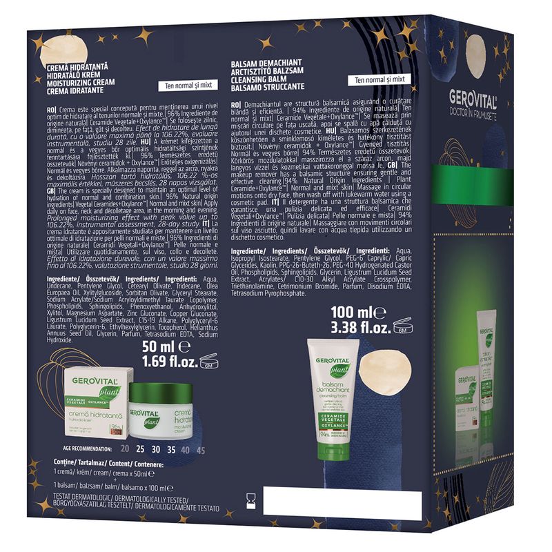 GEROVITAL PLANT CREMĂ HIDRATANTĂ Ingrediente/Összetevők/Ingredients/Ingredienti: Aqua, Undecane, Pentylene Glycol, Cetearyl Olivate, Tridecane, Olea Europaea Oil, Xylitylglucoside, Sorbitan Olivate, Glyceryl Stearate, Sodium Acrylate/Sodium Acryloyldimethyl Taurate Copolymer, Phospholipids, Sphingolipids, Phenoxyethanol, Anhydroxylitol, Xylitol, Magnesium Aspartate, Zinc Gluconate, Copper Gluconate, Ligustrum Lucidum Seed Extract, C15-19 Alkane, Polyglyceryl-6 Laurate, Polyglycerin-6, Ethylhexylglycerin, Tocopherol, Helianthus Annuus Seed Oil, Glycerin, Parfum, Tetrasodium EDTA, Sodium Hydroxide.