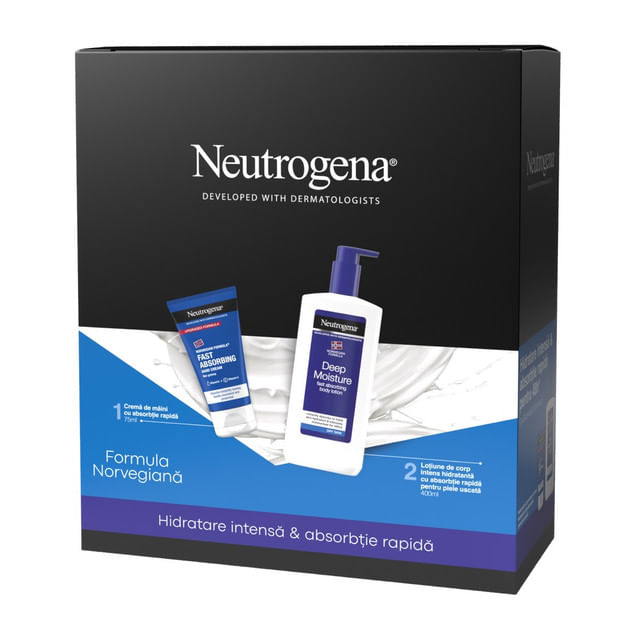 Set pentru cadou Neutrogena: Lotiune corp intens hidratanta, 400 ml + Crema maini cu absorbtie rapida, 75 ml Set pentru cadou Neutrogena: Lotiune corp intens hidratanta, 400 ml + Crema maini cu absorbtie rapida, 75 ml