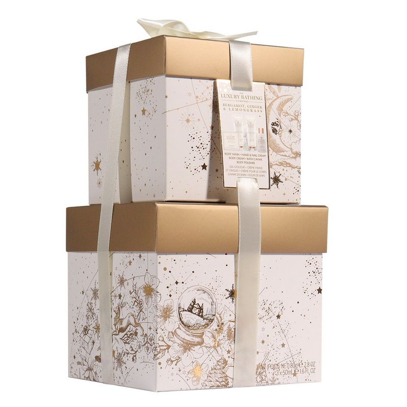 Ambalat in doua cutii de cadou elegante, cu imprimeuri aurii, legate cu o panglica alba, acest set este alegerea perfecta pentru cadou la zile de nastere, aniversari, ocazii speciale sau oricand doriti sa celebrati un moment special cu cineva drag.
