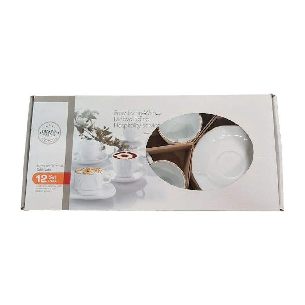 Set pentru cafea Dinova, 12 piese, opal, 190 ml, alb-auriu