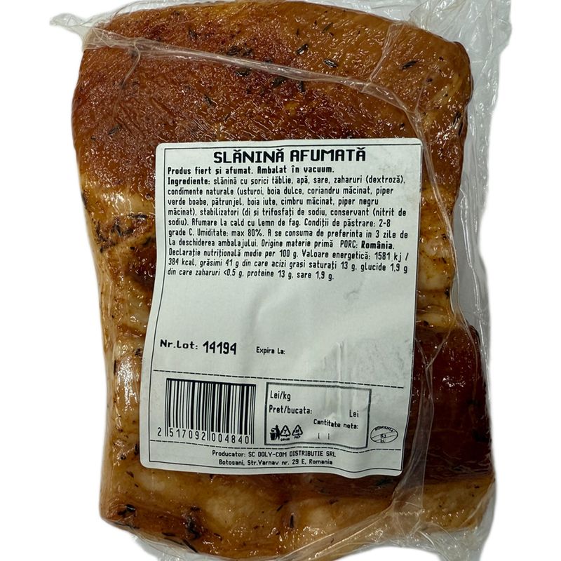 Lactate, Carne, Mezeluri & PesteCarneSpecialitati din carneSlanina de porc afumata Auchan, vid, +/- 1 kg