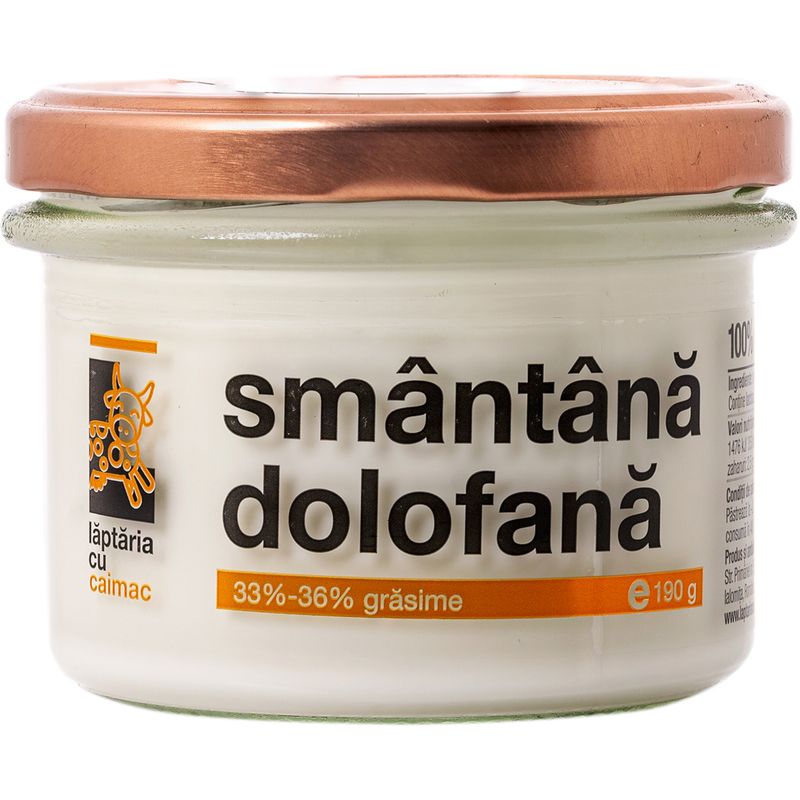 Smantana dolofana de la Laptaria cu caimac este extrasa din laptele natural de la vaca si are minimum 33% grasime, cu un gust nu foarte acru si indeajuns de dulce.