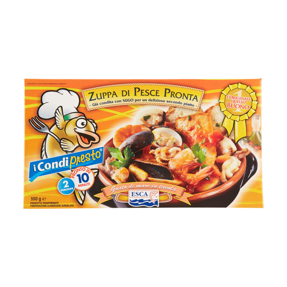 ciorba de peste deja condimentata cu sos, gata preparat, d congelata, pentru un fel principal delicios ingrediente: peste si fructe de mare 59% (merluciu albastru (1*) si/sau merluciu (2*-13*), calmar pacific (8*) si/sau calamar indo-pacific (9*), midii atlantice cu coaja (3*) si/sau scoici chilieni cu coaja (4*), scoici de Pacific cu coaja, scoici chilieni prefierte cu coaja, cozi de creveti - tigru ( 5*) si/sau cozi de creveti indo-pacific (6*) si/sau cozi de creveti (7*)), rosii, apa, ulei de masline extravirgin 1%, ulei de floarea soarelui, patrunjel, ceapa, bulion de peste (maltodextrina, drojdie) extract, arome naturale, peste , sare), sare), sare, usturoi, arome naturale, condimente (chili), fara gluten, produs intr-o planta care prelucreaza si peste, crustacee si moluste , poate contine urme de sulfiti , calamar contine acidifianti si acid citric, (*) numerele date in functie de žutatele respective si repetarea lor pe partea laterala a ambalajului langa iosrivamer indica ingredientele utilizate, pp.