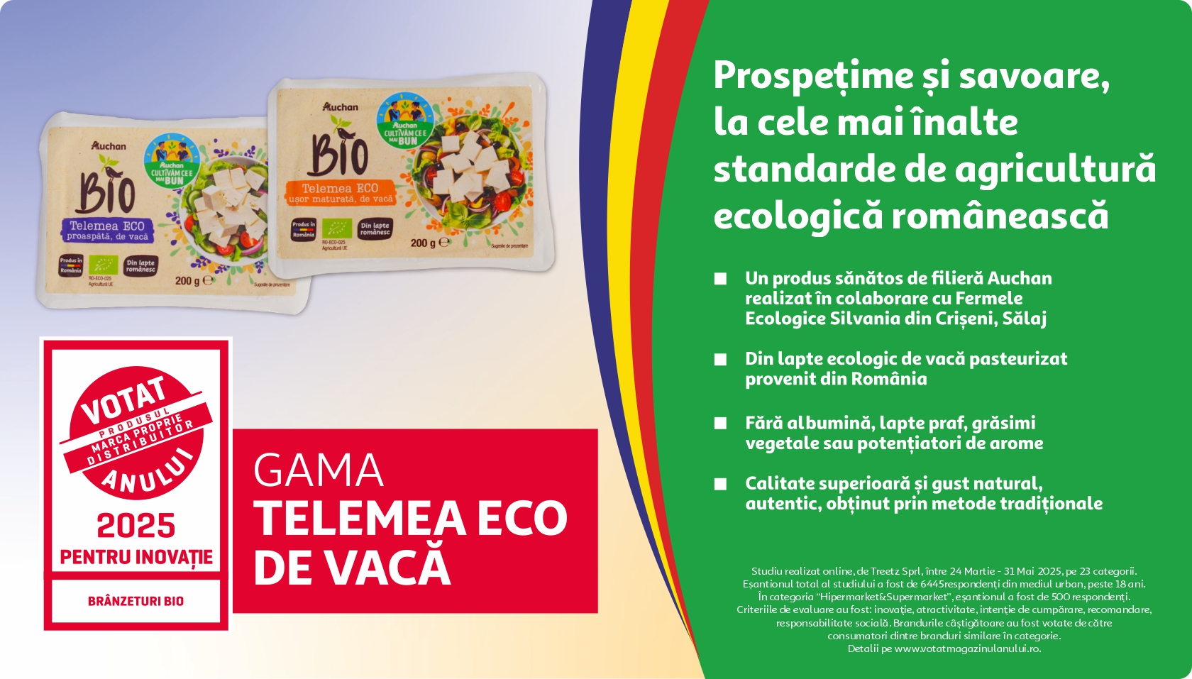 Fiecare alegere pe care o faci din gama noastră extinsă de produse locale susține comunitățile românești și garantează că vei savura produse autentice și sănătoase. Am dezvoltat filiere naționale din mai multe categorii, precum fructe și legume proaspete, carne, lactate, produsele de băcănie atât de iubite de către români și nelipsite de pe rafturile din cămară (varză murată, zacuscă, gem, suc de mere ș.a.) dar și alimente de bază (ulei de floarea-soarelui sau rapiță etc.) și plante cu flori în ghiveci.