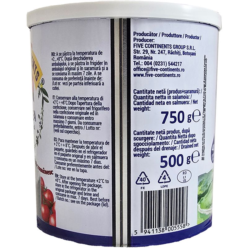 Telemea din lapte de vaca in saramura Five Continents, 500 g Telemea din lapte de vaca in saramura Five Continents, 500 g