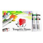 Tempera in 6 culori Poate fi utilizat pe hartie, carton si lemn. Acoperirea este foarta buna si rapida. Se curata usor cu apa si sapun.