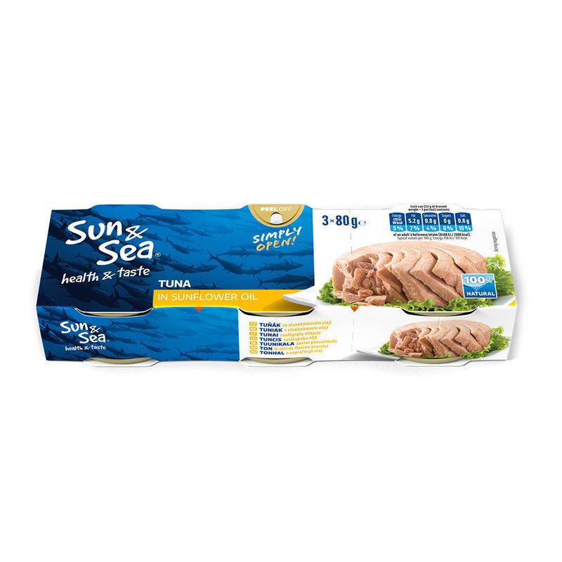 Ton bucati in ulei vegetal Sun&Sea 3 x 80 g - Comanda online acum