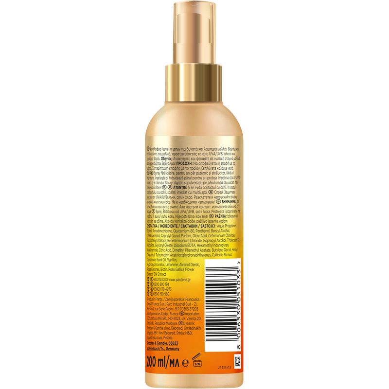 Tratament Leave-In Pantene Sun Kissed Glow: Experimenteaza un par vibrant, puternic si sanatos in aceasta vara! Imbogatit cu Pro-Vitamina B5 si Vitamina E, aceasta formula usoara si non-grasa hraneste profund si repara parul, mentinandu-l proaspat si fara frizz, protejandu-l de UVA, UVB, sare si clor. Bucura-te de stralucire intensificata si de un parfum racoritor si placut. Aplica pur si simplu pe parul umed sau uscat, concentrandu-te pe lungimi medii si varfuri, fara a necesita clatire.