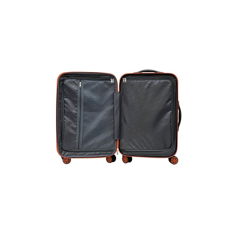 Troler confectionat din ABS , inaltime 60 CM, cu o compartimentare eficienta, ce iti permite transportul bagajelor in siguranta. Compartimentul principal, captusit la interior, este suficient de incapator pentru hainele tale, iar buzunarul cu fermoar este ideal pentru lucrurile marunte. Curelele interioare vor securiza bagajul pe perioada transportului. Dotat cu 4 roti duble , cu rotire 360°, asigura o manevrare usoara.Pentru un plus de securitate, trolerul se inchide cu fermoar si cifru .