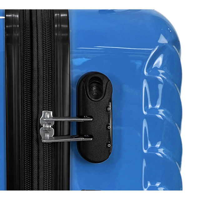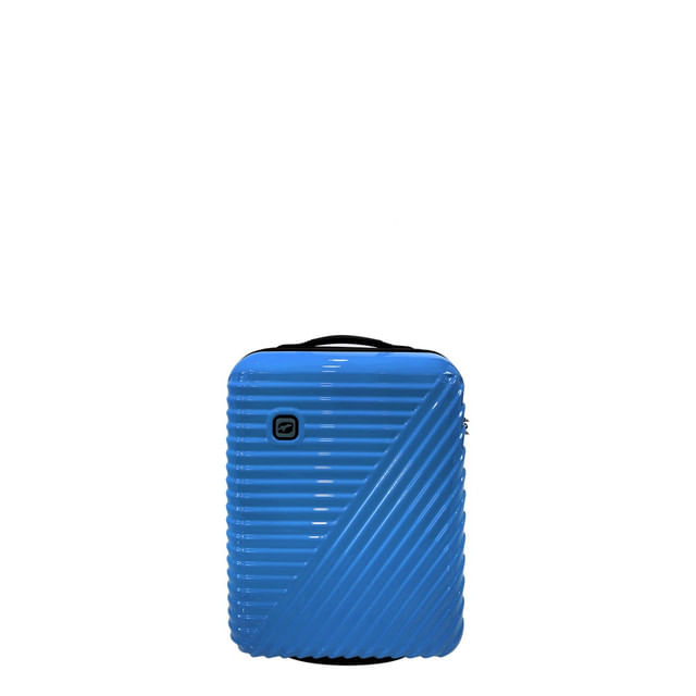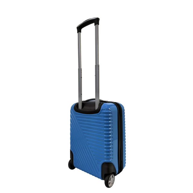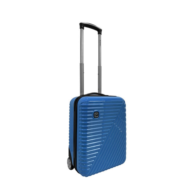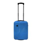 Troler ABS Shinny XS, dimensiuni aprox. 32x44x19 cm, albastru. 8 roti spinner, tija dubla cu buton, lacat combinat, interior 2 compartimente U, captuseala 210D cu imprimeu Airport, compact si rezistent.