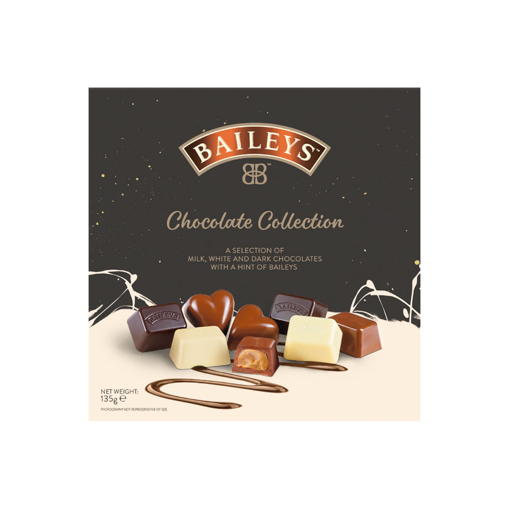 Rasfatati-va cu decadenta pura cu Baileys Chocolate Collection. Aceasta selectie de trufe infuzate cu Baileys si ciocolata cremoasa vine intr-o varietate de arome, inclusiv ciocolata cu lapte, neagra si alba. Bucurati-va de un tratament fin si cremos care va va duce simturile intr-o calatorie de neuitat! Ciocolata cu lapte conține substanțe solide de cacao minim 37%, substanțe solide din lapte 14% minim. Ciocolata alba contine substante solide din lapte minim 21%. Ciocolata neagră conține substanțe solide de cacao minim 54%.