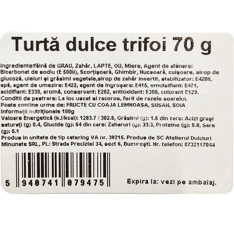 Turta dulce Dulciuri minunate, forma trifoi, 70 g Turta dulce Dulciuri minunate, forma trifoi, 70 g