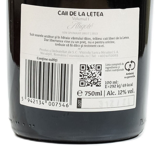 Vin spumant alb brut Caii de la Letea Volumul I, Aligote, 0.75 l Vin spumant alb brut Caii de la Letea Volumul I, Aligote, 0.75 l