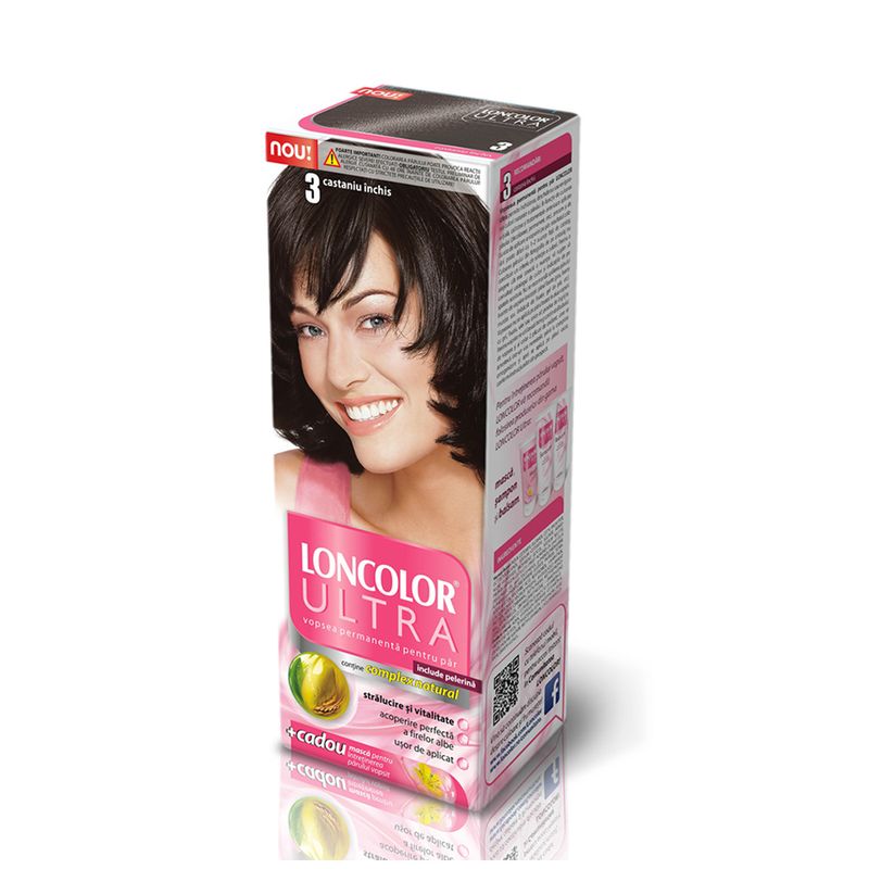 Vopsea permanenta pentru par Loncolor Ultra, 3 Castaniu inchis - Comanda online acum